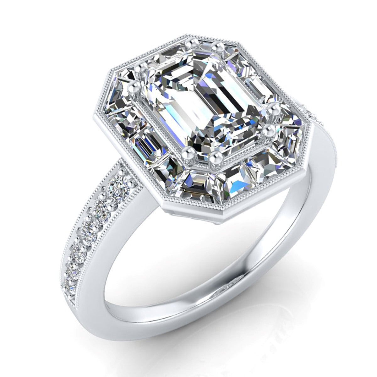 Choose from a wide assortment of engagement rings before selecting a diamond. You can then select the most appropriate diamond for your budget.