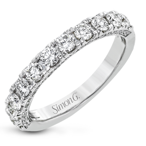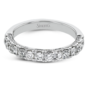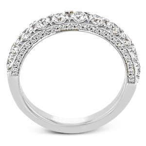 This design uniquely pairs a straight-row diamond band with the detail of a small row of diamonds down the profile view. This creates a classic design with a magnificent and current look.