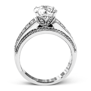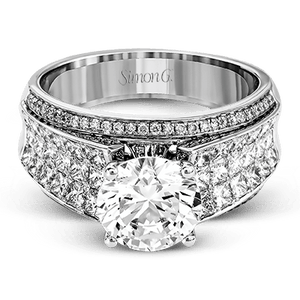 Some customers ask to see engagement ring designs that can be worn as stand-alone rings without a wedding band. Measuring 9mm wide and designed to hold a round diamond in the 1.75 carats to 2.50-carat range, this ring is a perfect fit. You can wear it with a small diamond wedding band, but most prefer it as a stand-alone piece.